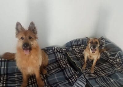 Bull es un perro encantador con todos los voluntarios, se deja querer, busca mimos, premios y contacto humano constantemente. Es limpio en su casa, cuando llegó le pusimos una camita alta para que no durmiera en una manta en el