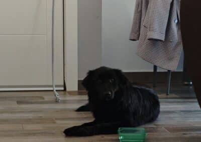 Es tímido y algo miedoso al principio pero coge pronto confianza. Es muy bueno, le cuesta las cosas al principio porque tiene algo de miedo pero luego va de maravilla.