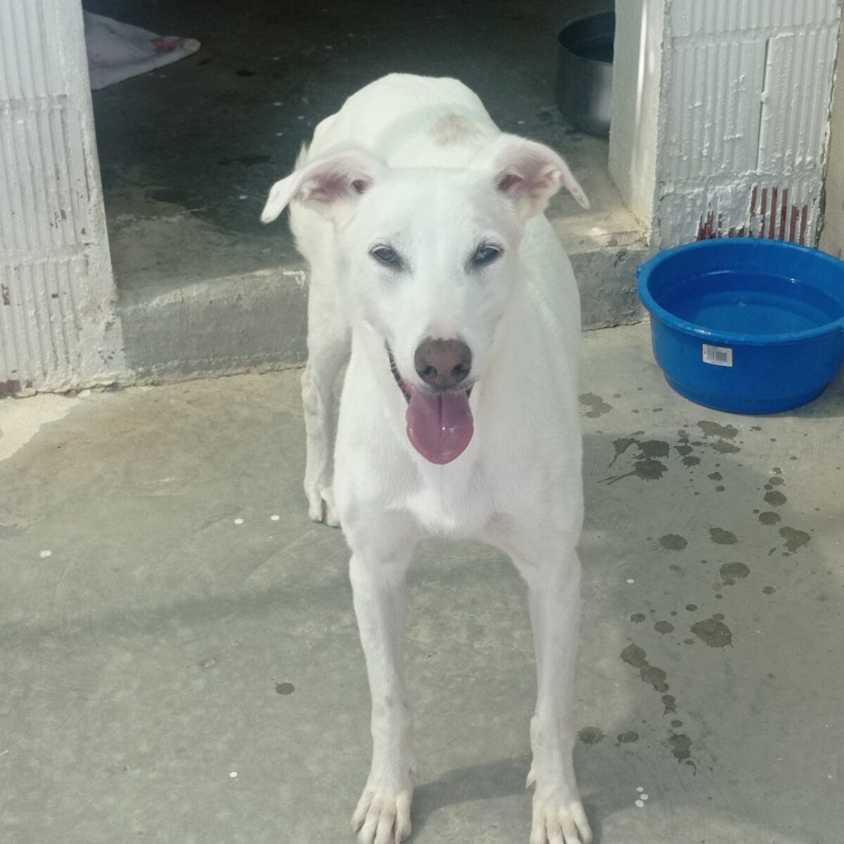 Es súper cariñosa con todos los voluntarios y no extraña a nadie ni tiene temor alguno. En coche va muy bien y en el veterinario se porta como una campeona. Le encanta dar paseos y que le colmen de atenciones, no le gusta nada la soledad. Ella corresponde reclamando mimos. ¡Un amor!