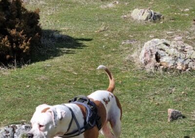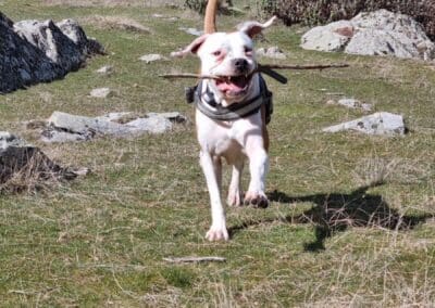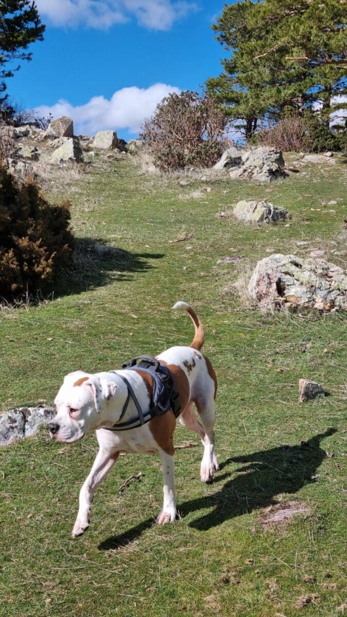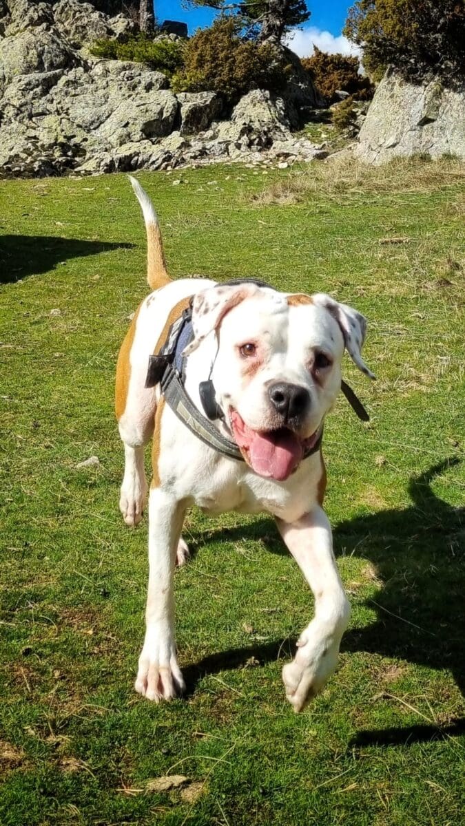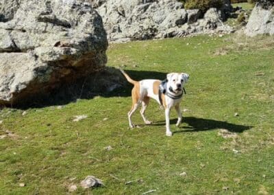 Es reactiva con los perros que no conoce pero con los habituales pues una más sin problemas. En casa es muy calmada no hace ni daña nada, y por ahí solo quiere correr y jugar, es super obediente a las órdenes que le marcas.